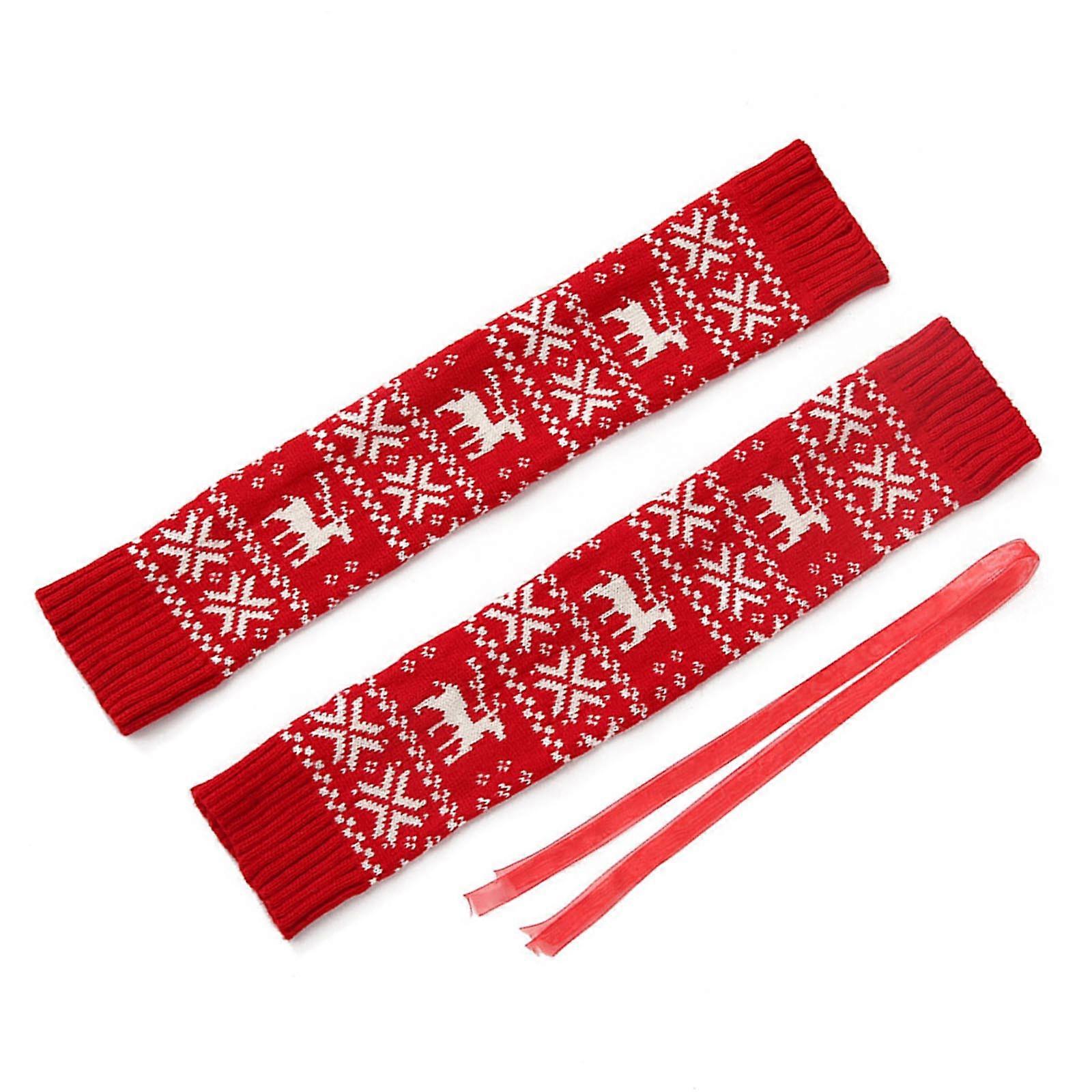 Women Christmas Snowflake Knitted Over Knee Leg Warmers Stockings with Straps Thigh High Foot Covers Footless Long Socks Red