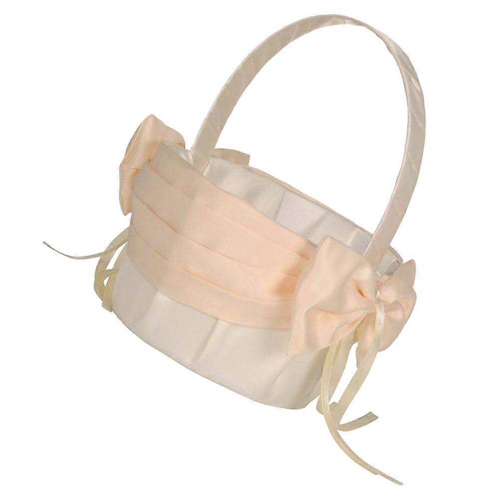 Romantic Flower Basket Wedding Decoration Petal Bowknot Ornament Beige 15X15CM 1Pcs