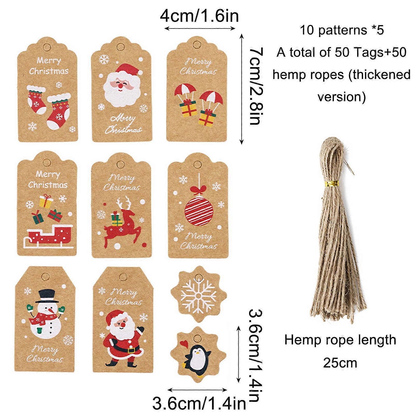 50/100PC Christmas Tags from Santa, Holiday Kraft Hang Tags with Ropes, Brown Paper Labels for Xmas Gifts - compatible with Quinlirra