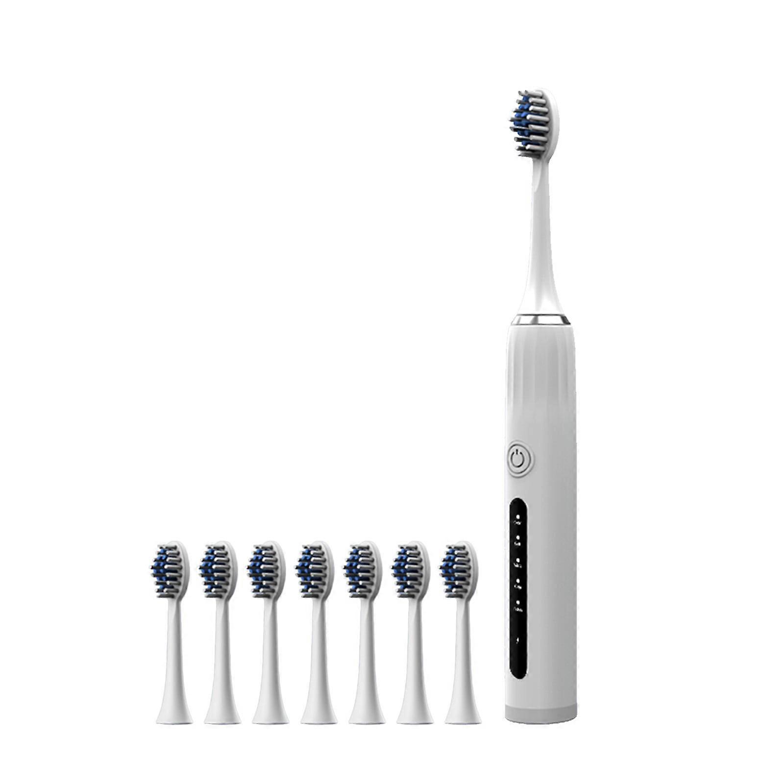 Soft Bristle Smart Toothbrush Kids Rechargeable Adult Electric Toothbrush: Features: Cleaning Power: Our electric toothbrush delivers an imprssive- 39600 vibrations per minute, providing a thorough and effective cleaning experience for your teeth and gums. Five Cleaning Modes: With five different cleaning modes to choose from, including daily clean, sensitive, whitening, gums care, and massage, you can customize your brushing experience to meet your specific oral health needs. and Durable: Designed with IPX7 rating, our electric toothbrush is perfect for use in the shower or bath. Its construction ensures long-lasting durability and easy cleaning. Gentle and Effective Brushing: Equipped with ultra-soft bristles, our electric toothbrush is gentle on your teeth and gums while still effectively removing plaque and improving overall oral hygiene. Exceptional sound wave Technology: Our electric toothbrush utilizes powerful sound wave vibrations to provide a deep and thorough cleaning action, leaving you with a bright and well-being smile. Product Description: 1x Electric Toothbrush 8x Brush Heads Our Brush Head Technology Removes More Calculus Along the Gums Even as it Protects the Gums Compared to a Manual toothbrush. This Electric Toothbrush Can be Personalized and Layered to Meet Your Individual Needs: Such as Deep Cleaning, Soft Cleaning, And Whitening. The Battery-Powered Toothbrush Cleans Your Entire Mouth, Including Your Teeth, Cheeks, Tongue and Gums, So You Can Enjoy a Full-Mouth Clean Every Time You Brush! Combining the Familiarity of a Manual Toothbrush Head with the Power of a Battery-Operated Toothbrush, Each Soft-Bristled Toothbrush Has Soft Floss-Tipped Bristles that Help Clean Between Teeth, And the Powerful Technology Delivers an Amazing Clean with the Push of a Button on the Vibrating Toothbrush! We Attach Great Importance to Product Quality and Customer Experience,If You Have Any Questions About the Product, Please Contact Us Customer Service,We Will Provide You with Satisfactory