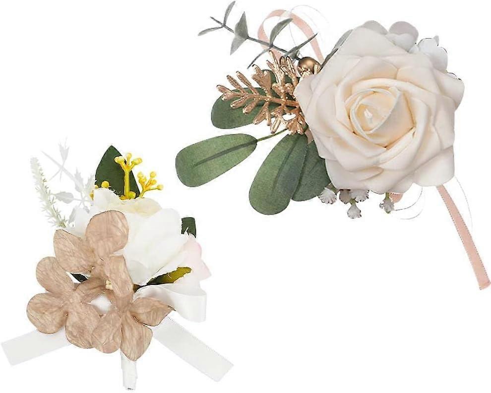 2PCS Artificial White Lily Wrist Corsage, Compatible with Wedding Bridal Accessories, DIY Elastic Wristband for Bride & Groom