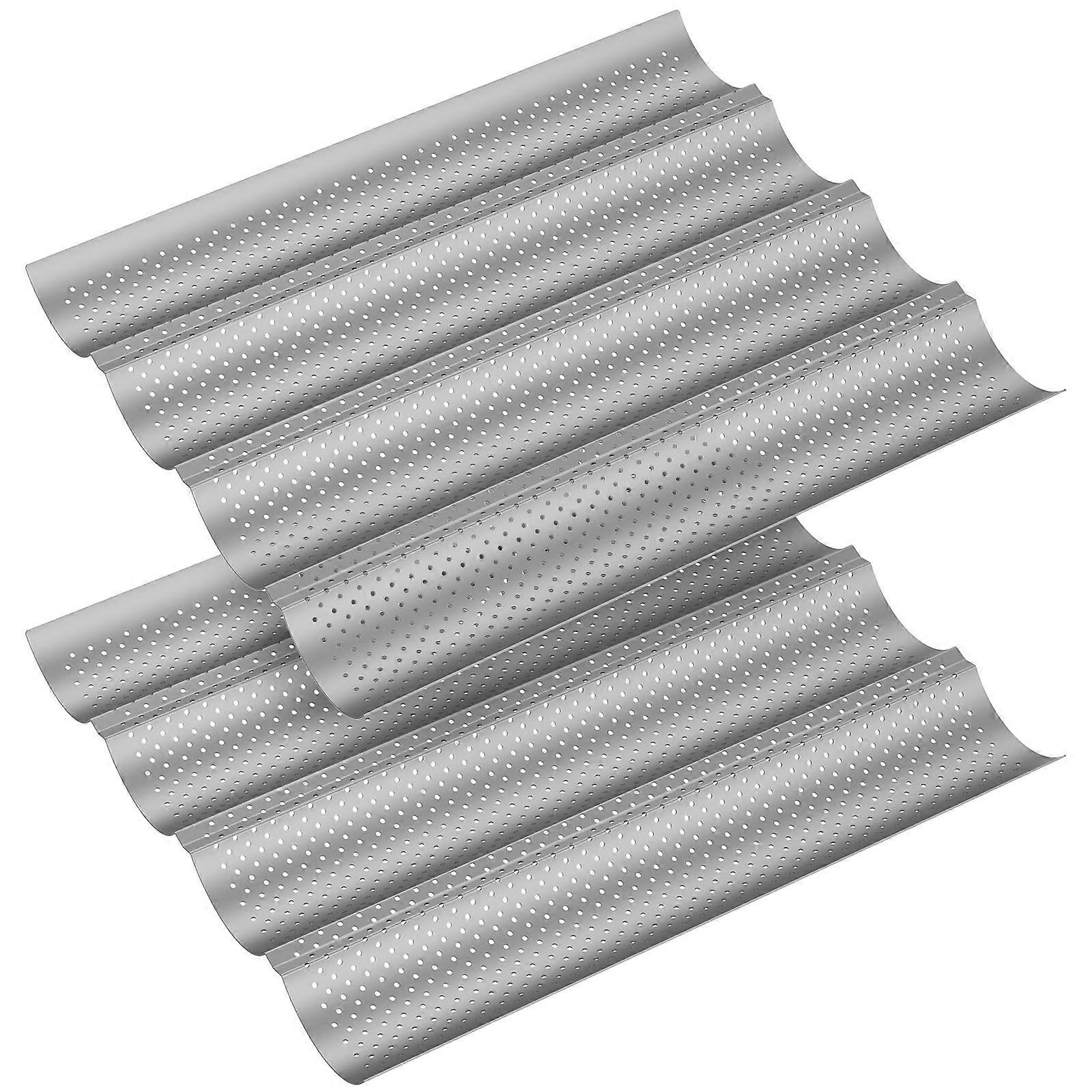 2Pcs Nonstick Perforated French Bread Pan, 4-Wave Loaf Mold, Breathable Baking Tray Compatible with Standard Ovens