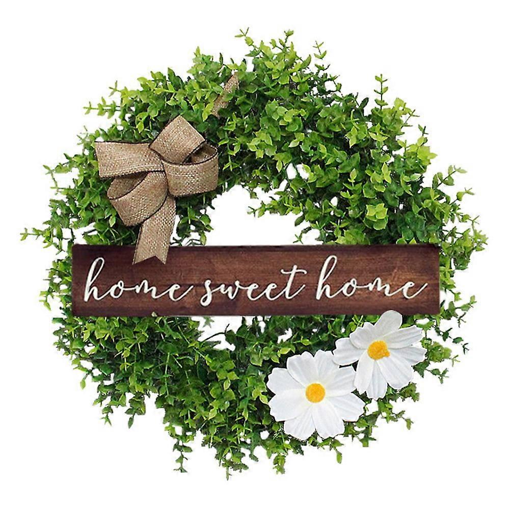 Spring Summer Wreath, Artificial Decorative Wreath with Wooden Welcome Sign for Farmhouse Wall, Window & Home Decor