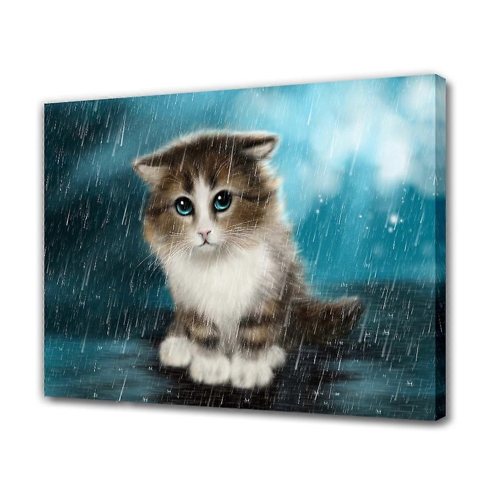Little Sad Kitten In The Rain Canvas Poster Bedroom Decor Sports Landscape Office Room Decor Gift,Frame-style,08x12inch(20x30cm)