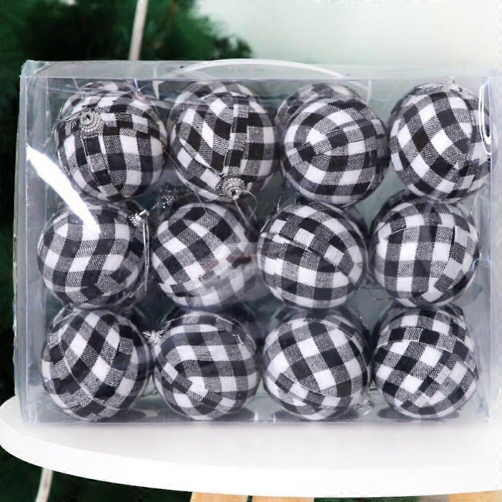 Pretty Comy 24Pcs Buffalo Plaid Fabric Balls, Compatible with Christmas Tree, Holiday Party Xmas Decor Hanging Ornaments