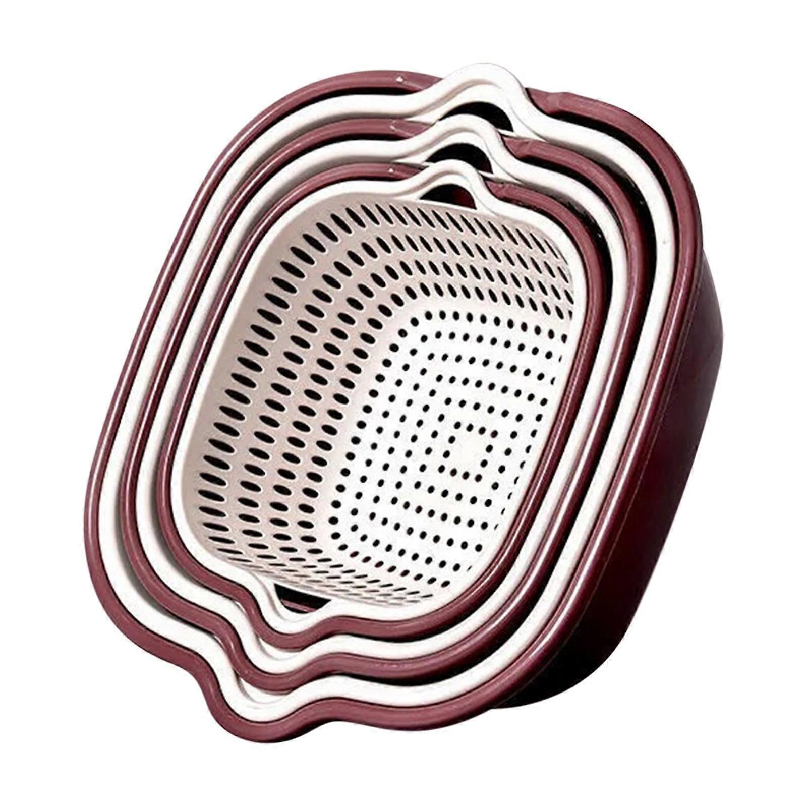 Large Kitchen Strainer Colander Bowl Set, Thickened Double-layer Basket, 6-Piece Plastic Vegetable Washing Basket Compatible with Fruit & Veg Storage