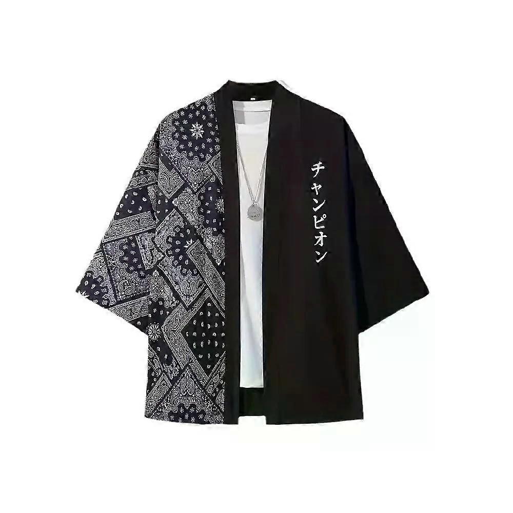 Japanese Kimonos for Men Letter Print Open Front Cardigan Adult Harajuku Sunscreen Clothes Summer Vacation Coat