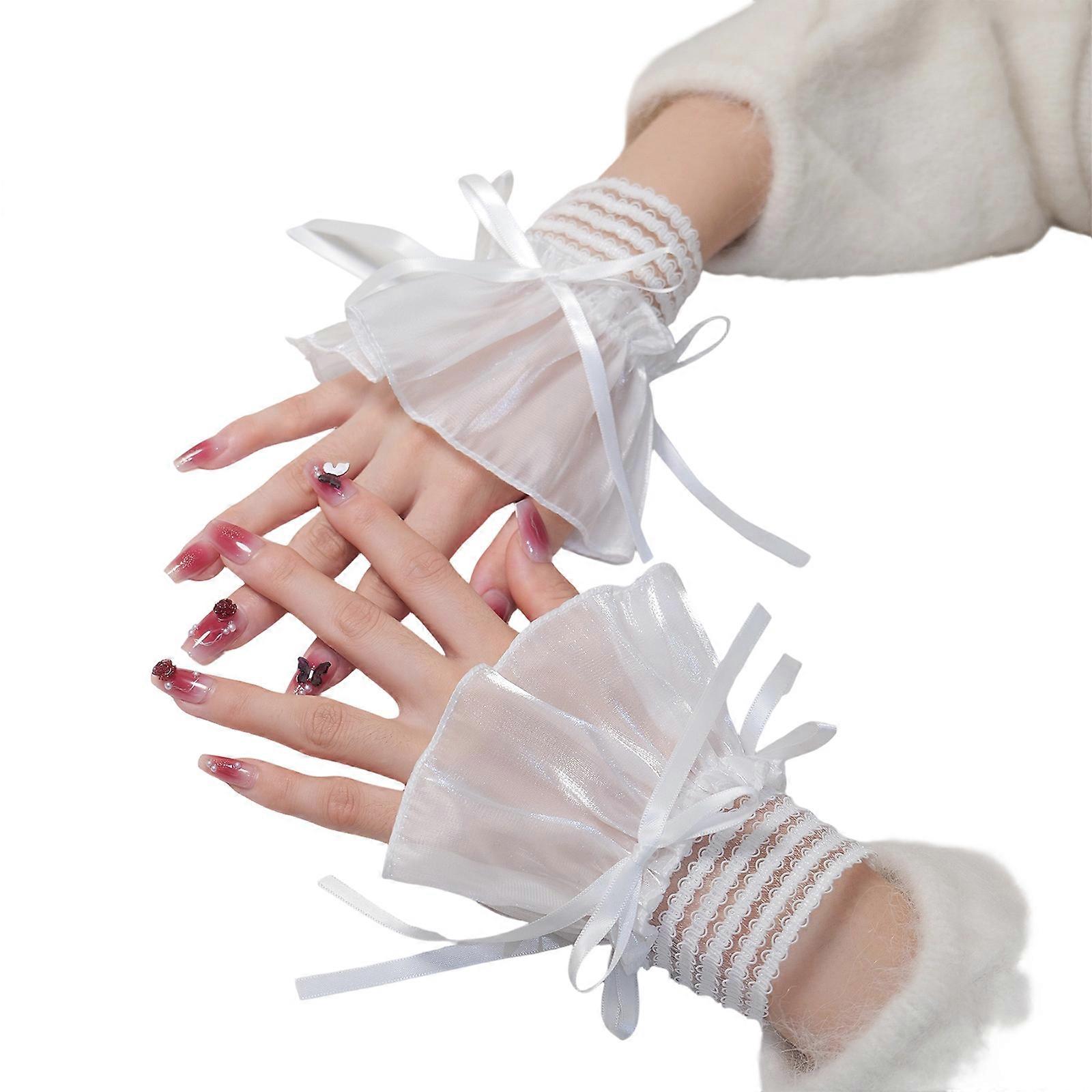 Women Fingerless Gloves Lolitas Bows Ruffle Arm Sleeves Princess Costume Accessories Arm Cover for Halloween Party White