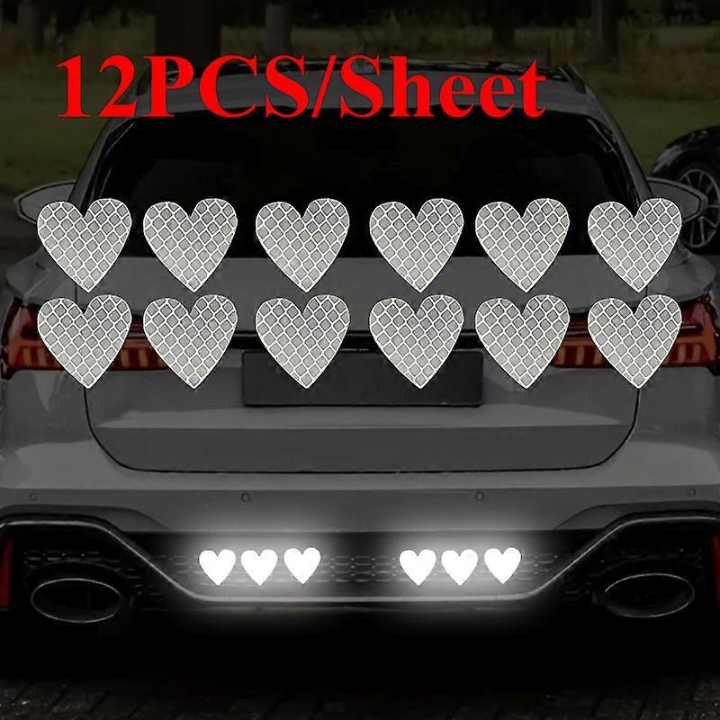 12PCS/Sheet Love Reflective Car Stickers Waterproof for Car Trunk Motorbike DIY Scooter Body Helmet Box Universal Vinyl Decals