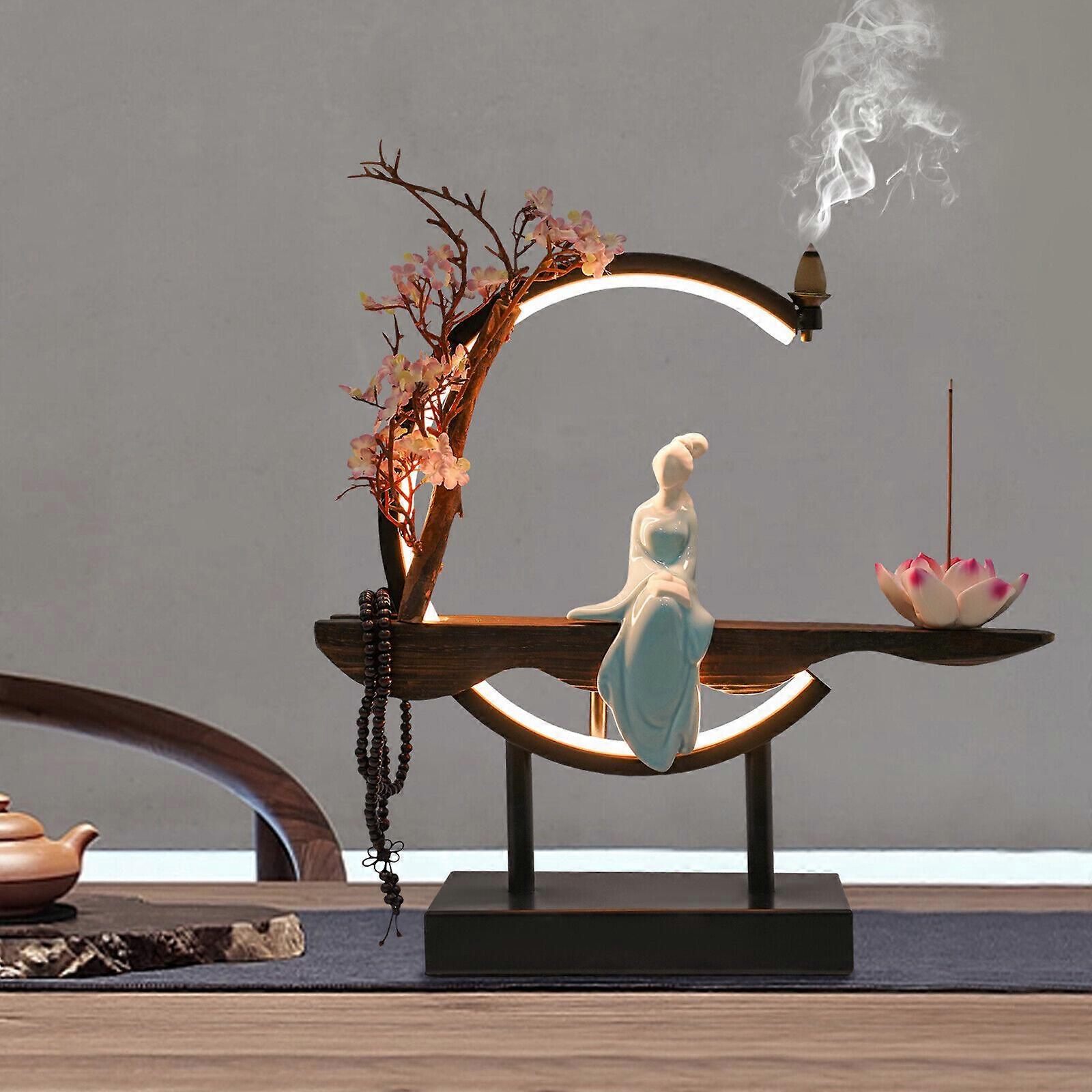 LED Lamp Lotus Incense Holder Retro Backflow Incense Burner Desktop Light Statue Decor Waterfall Handmade Flower Censer Lotus Flower