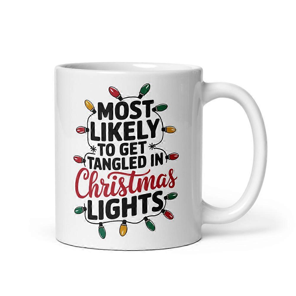 Family Matching Xmas White Glossy Mug, Most Likely to Get Tangled in Christmas Lights (11 oz)