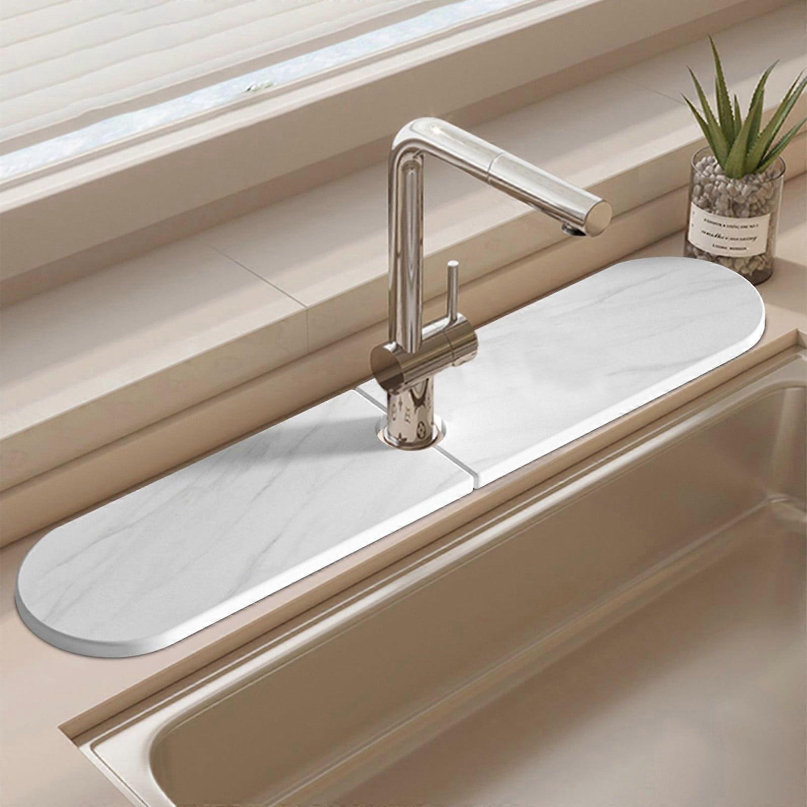 FloHua Christmas Gifts Clearance Faucet Mat for Kitchen Sink 24'' Long Diatomite Fast Drying Stone Tray, Super Absorbent, Prevents Buildup -