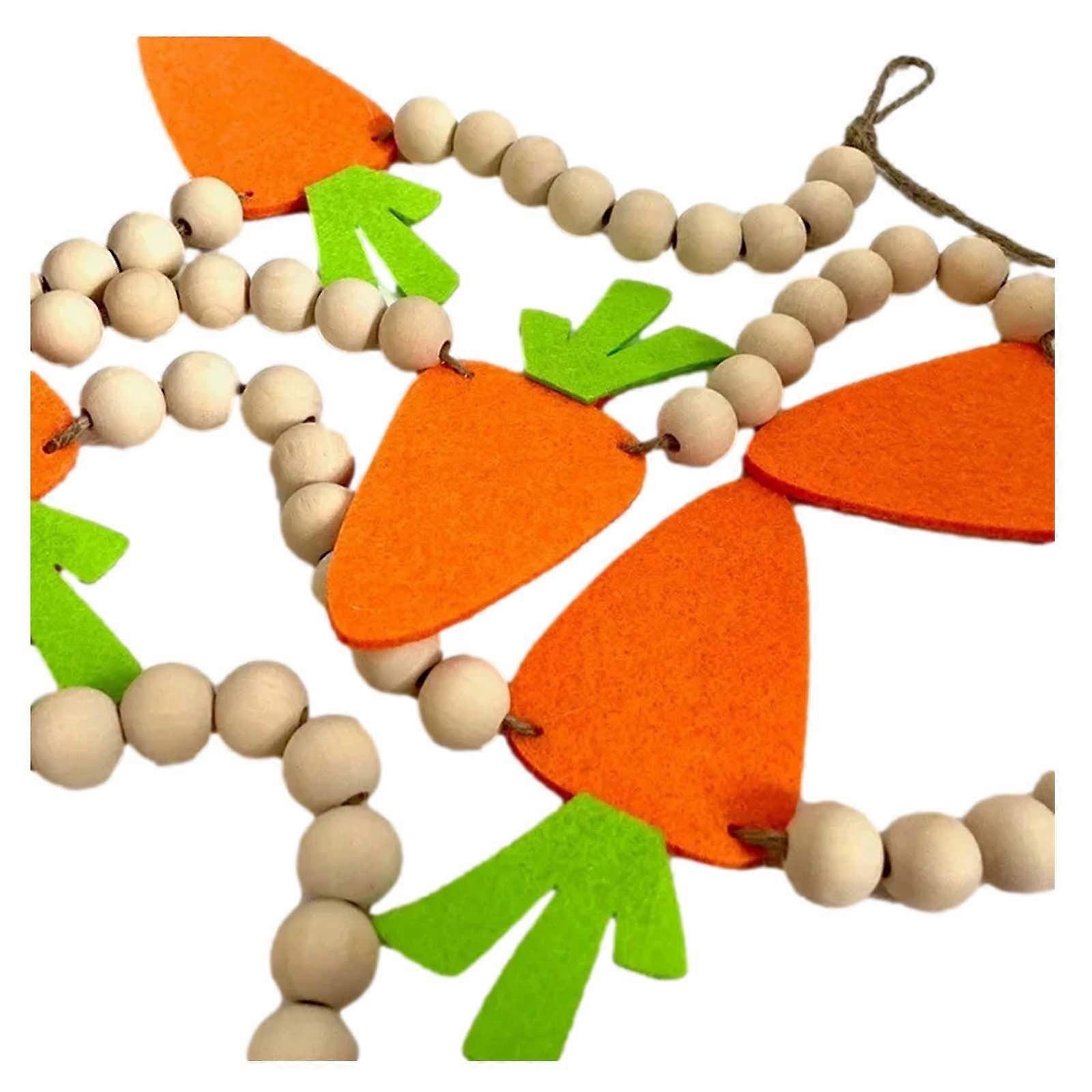 Easter Non-woven Carrot Hanging Ornaments 6Pcs, Wood Pearl Flag Flower Fireplace Decor, Artificial Carrots Garland for Home Kitchen Party