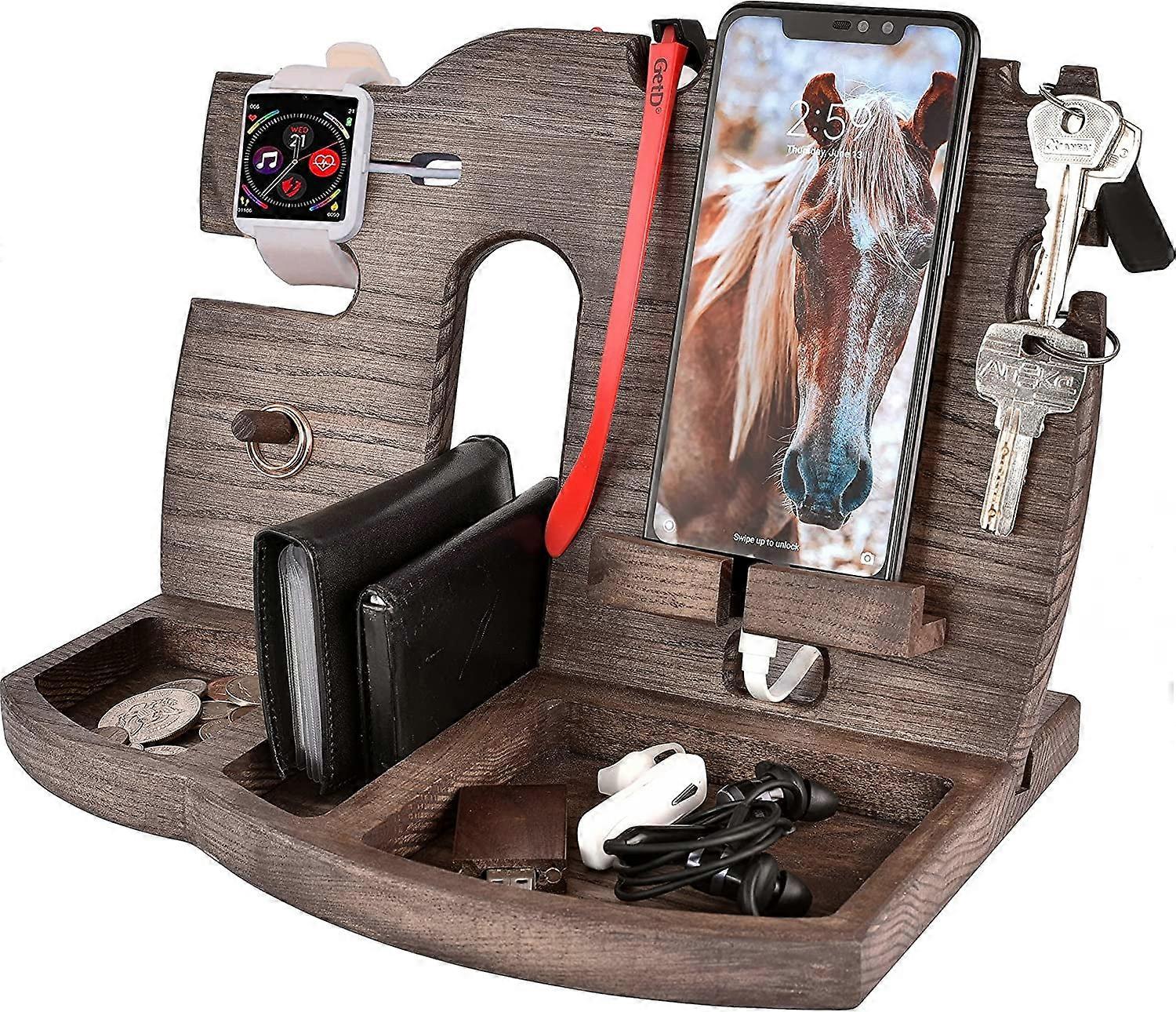 Wood Docking Station Nightstand Organizer Side Table Phone Wallet Watch Stand Key Holder Charging Dock Desk