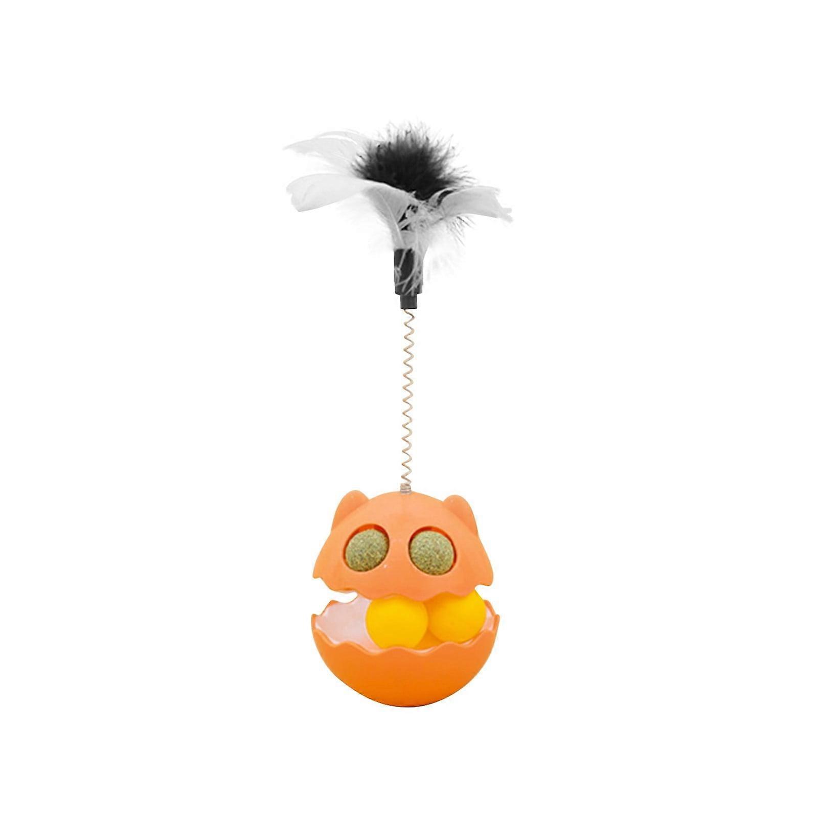 Tumbler Cat Toy Self-Hilarious Catnip Ball to Solve Boredom Feather Cat Toy Pet Supplies Pet Caring Cat Supplies(Orange)