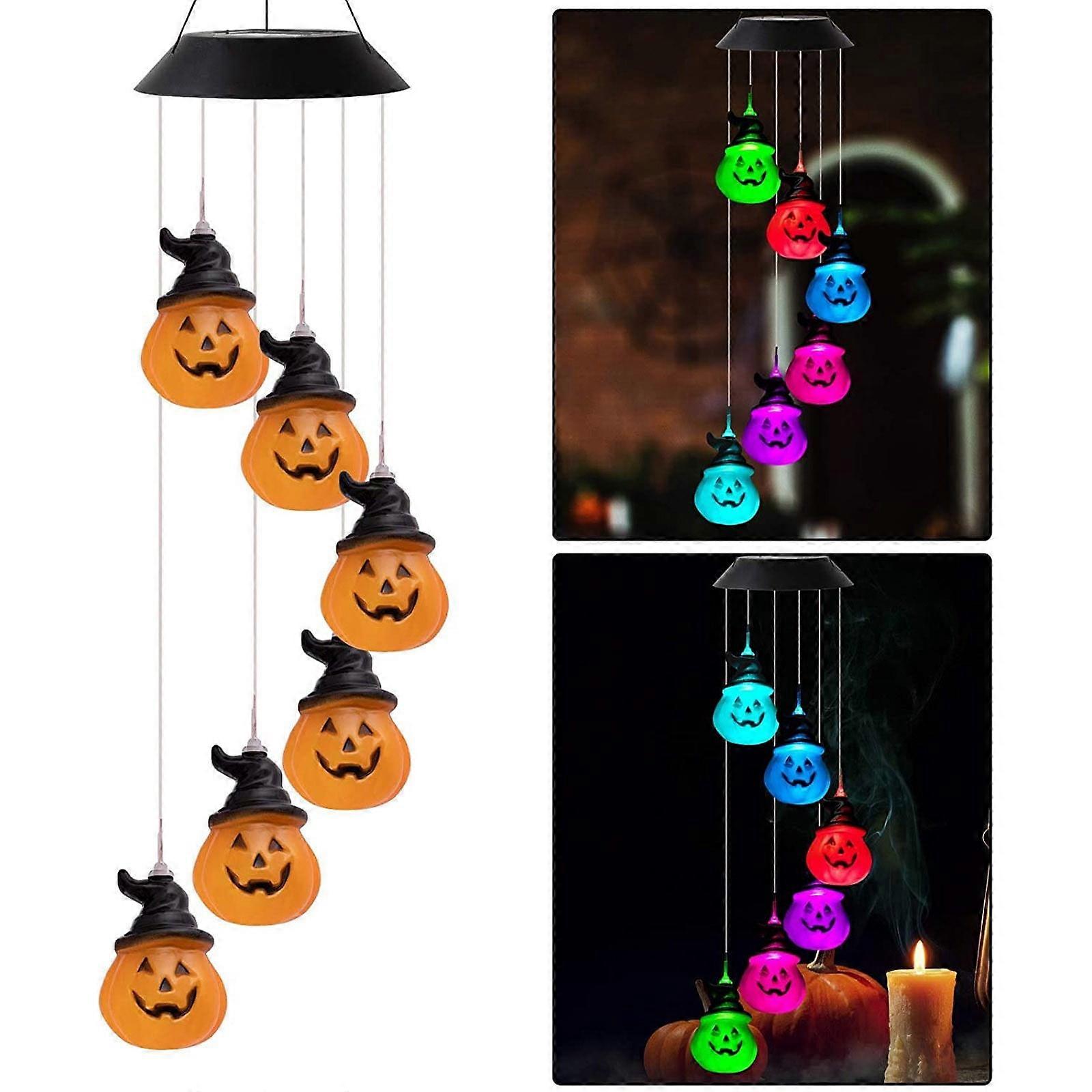 LED Solar Pumpkin Wind Chimes, Compatible with Outdoor Garden, Porch, Patio Decor – Gifts for Outside, Yard, Window Hanging Lights