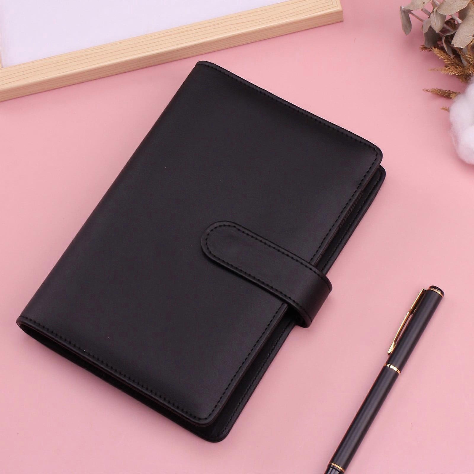 A5 Pu Leather Notebook with Buckle Closure, 6-Ring Planner for Organizing Pages, Photo & Card Sleeves, Compatible with Office, Craft, Stationery Use