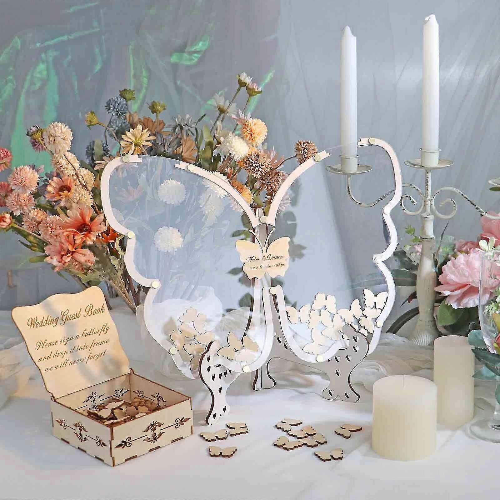 YiFudd New Wooden Butterflies Wedding Message Box Guest Wooden Delivery Box