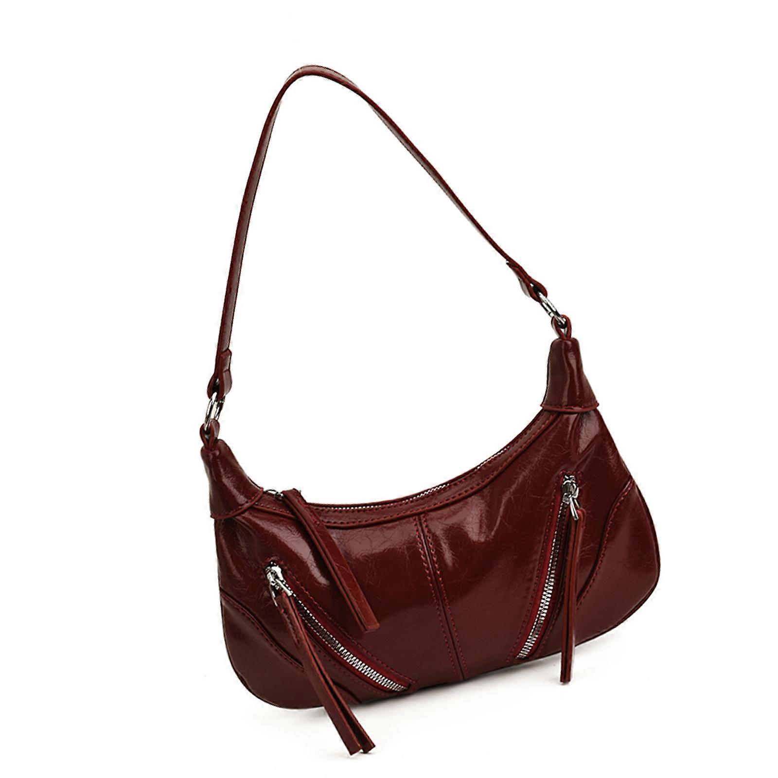 Retro Style Shoulder Bag With Tassels Design Adjustable Strap PU Leather Underarm Bags Casual Handbag For Trendy Women Burgundy