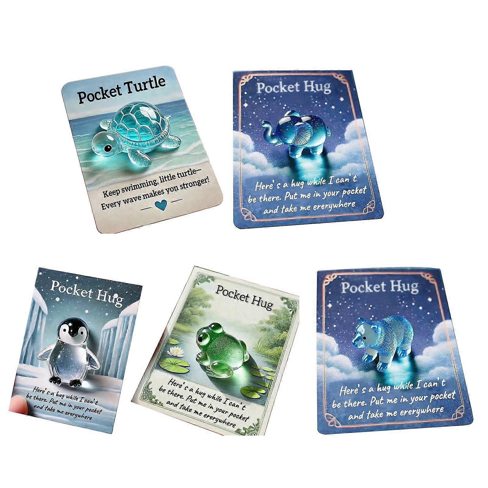 Jikaix Pocket Hug Animal Resin Mini Animal Pocket Hug Token with Card Emotional Support Turtle Miniature Encouragement Gift for Christmas Birthday