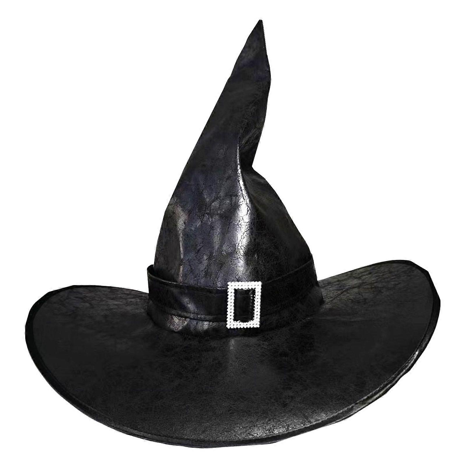 Jikaix Halloween Witch Hat Vintage Faux Leather Wizard Hat with Buckle Halloween Cosplay Party Costume for Men Women