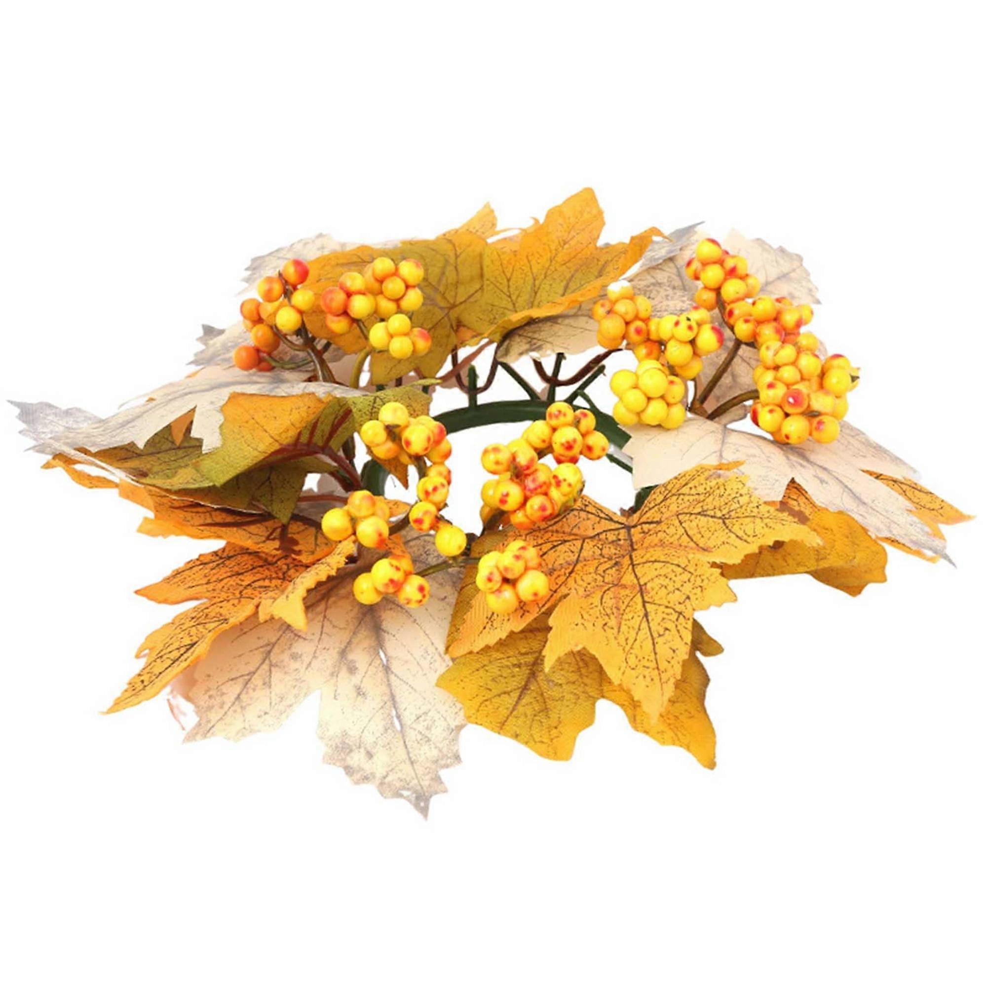 Vigorbear Thanksgiving Candle Rings Maple Leaves Berries Mini Fall Wreaths Candle Holders for Centerpiece Front Door Decoration