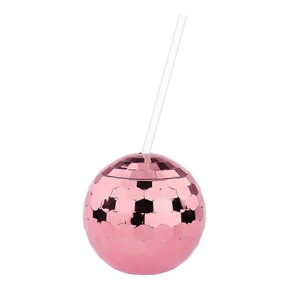 Disco Ball Cup 20oz with Lid & Straw, Fun Themed Tumbler for Bachelorette Party, NYE, Vacation - Rose Gold