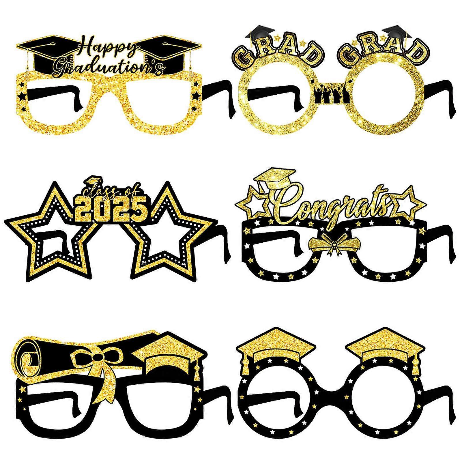 Jikaix 6 Pcs Black And Gold Graduation Glasses Class of 2025 Grad Eyeglasses for Graduation Party Decoration Photo Booth Props