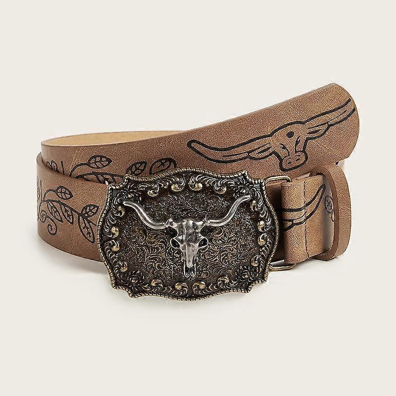 Vintage Western Cowboy Wind Buckle Printed Belt, Elegant Simple Design Belt for Men Women, High Quality Gifts Fit Daily Wear