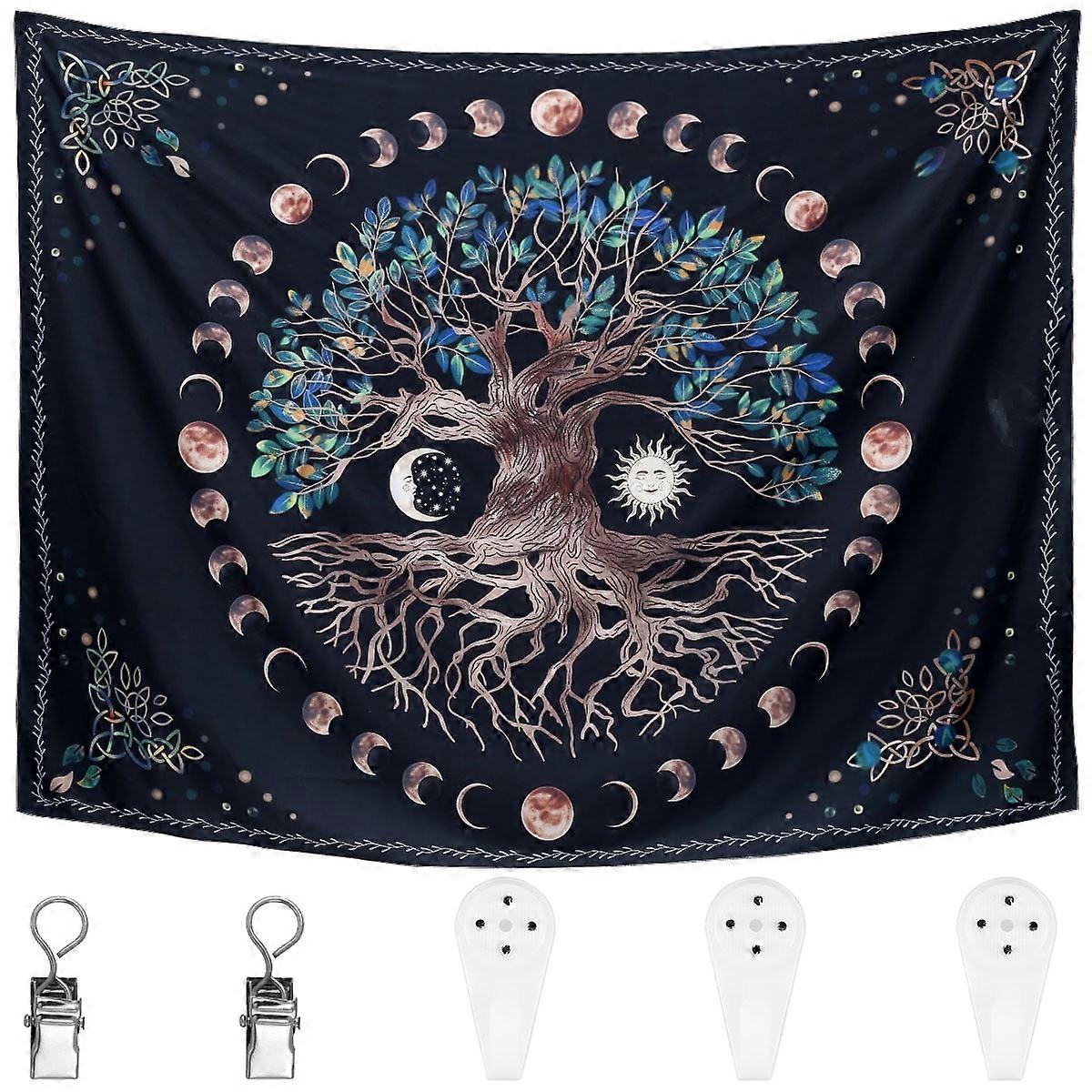 Wekvgz Tree of Life Tapestry Wall Hanging, Sun Moon Design, 59x79inch/51x59inch, Polyester, for Bedroom, Living Room, Home Decoration