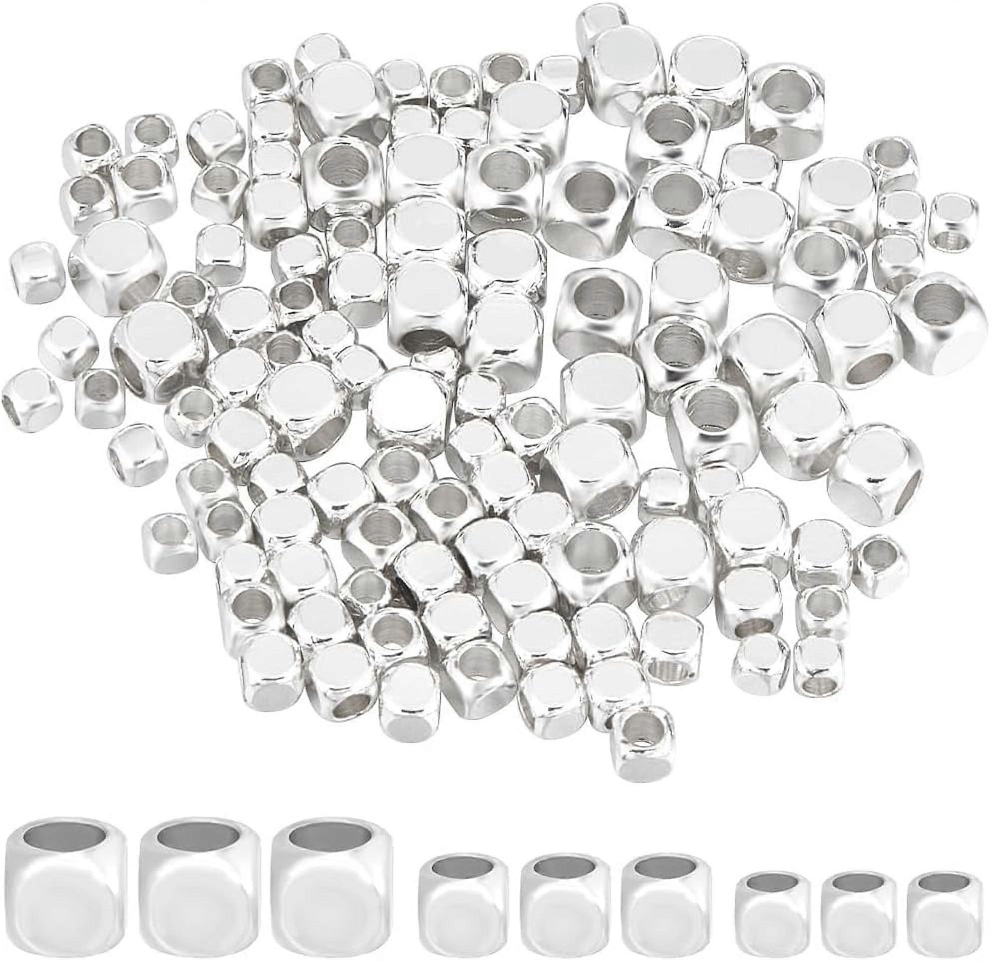 150Pcs 925 Sterling Silver Cube Spacer Beads, 4/3/2.5mm, Smooth Stackable Beads for DIY Jewelry Making, compatible with charm bracelets