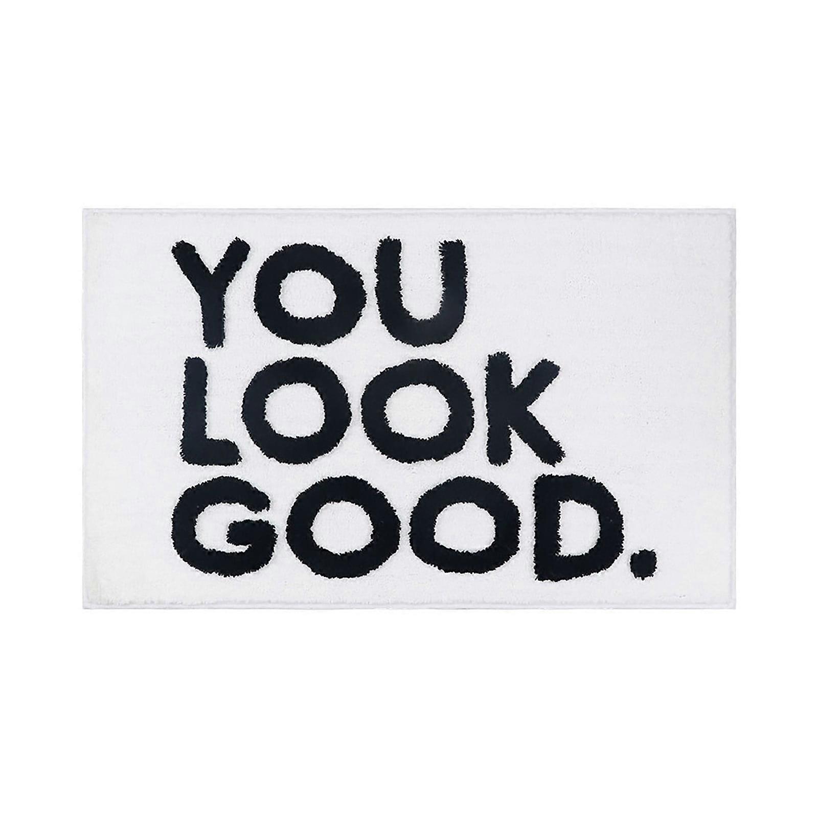 Polyester Carpet You Look Good Bath Mat Black, White Bathroom Rugs Cute Non Slip Microfiber Plush Funny Washable Absorbent Apartment Mat for Bathtub