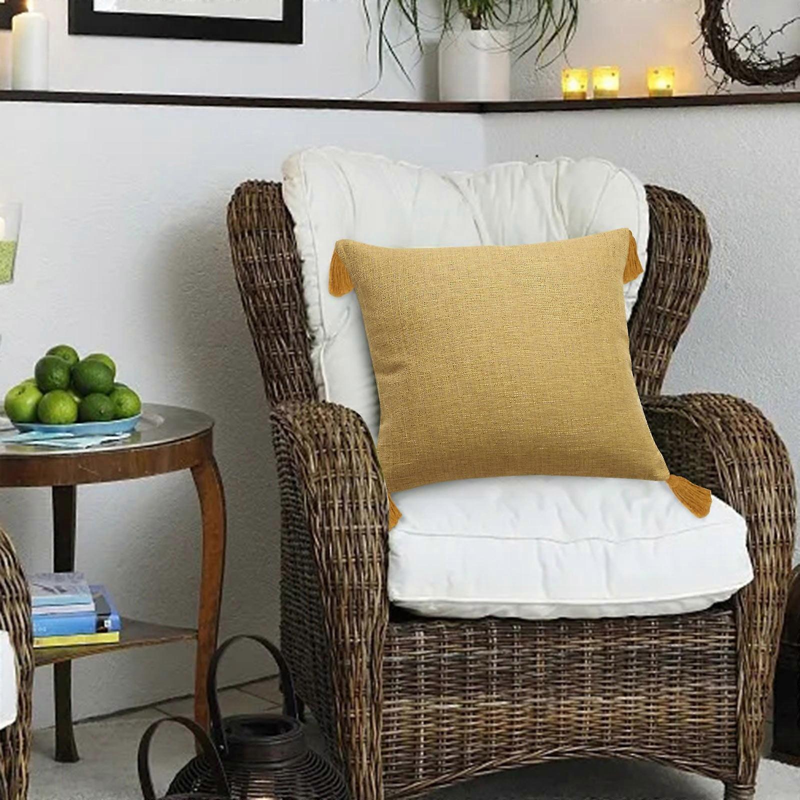Xubond 18x18 Cotton Pillowcase with Tassel, Simple Literary Farmhouse Cushion Cover for Sofa, Compatible with Decorative Pillows