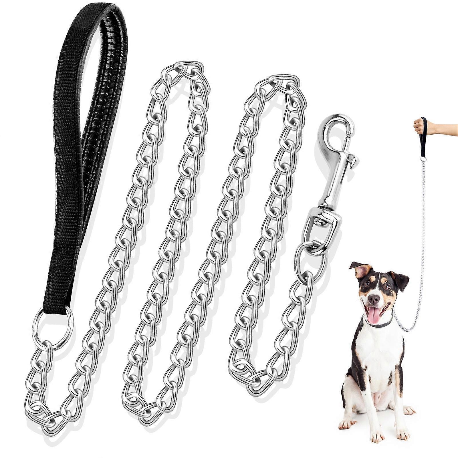 Chain Heavy Duty Metal Dog Leash, Metal Heavy Duty Chew Proof Pet Leash Chain with Padded Handle for Small Medium Size Dogs, 3.0mm x 4.1ft