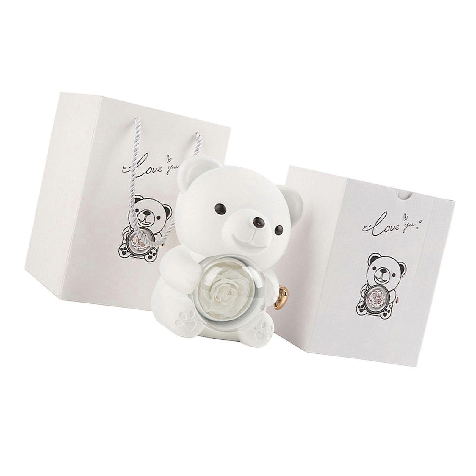 Gift of Roses Decoration Bear Box Beautiful Bear and Roses Jewelry Box Unique Adornment Holders for Special Event White