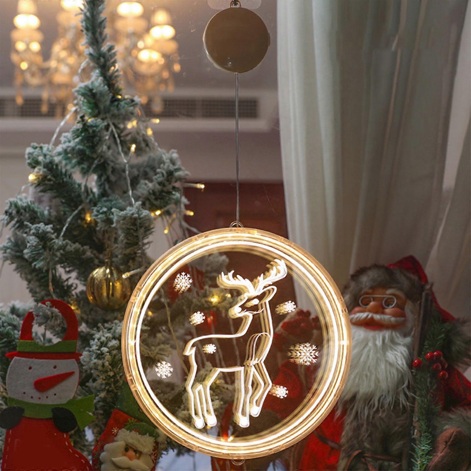 Christmas LED Lights Decor, Battery-Powered Window Display with Suction Cups, Warm White Snowflake & Snowman, Indoor Holiday Lights Gift