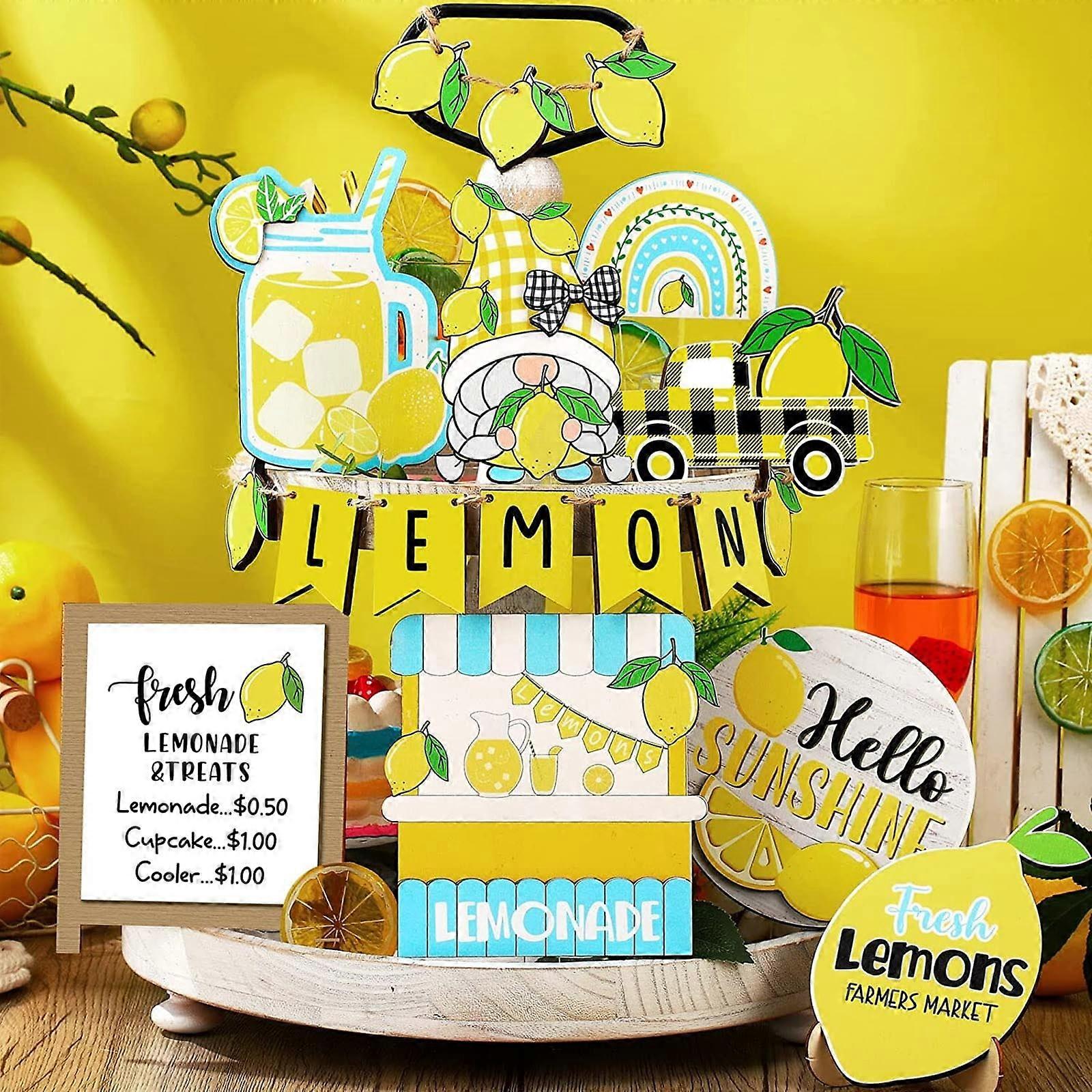 Xubond Lemon Theme Layered Tray Set, Wooden Logo Truck, Dwarf Cup, Rainbow Decor, Yellow Serving Tray - Compatible with farmhouse party room decor