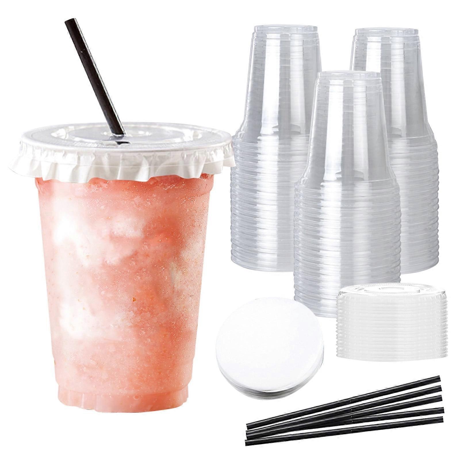 HKUKY 20PC Clear Plastic Cups with Lids & Straws, 500ml Iced Coffee Cups, Smoothie Cups for Cold Drinks, Compatible with XYZ