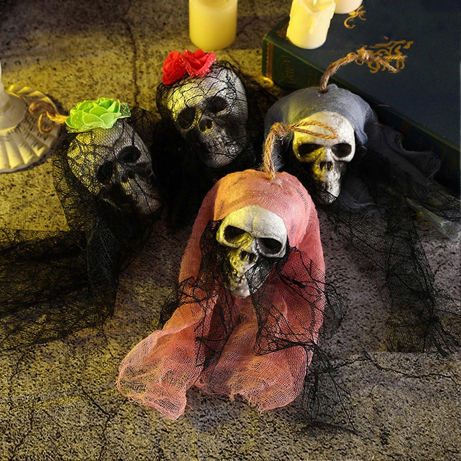 SUSUchens Halloween Skull Pendant Durable Creepy Black-eyed Skull Ornament with Mesh for Party Haunted House Decor Style C