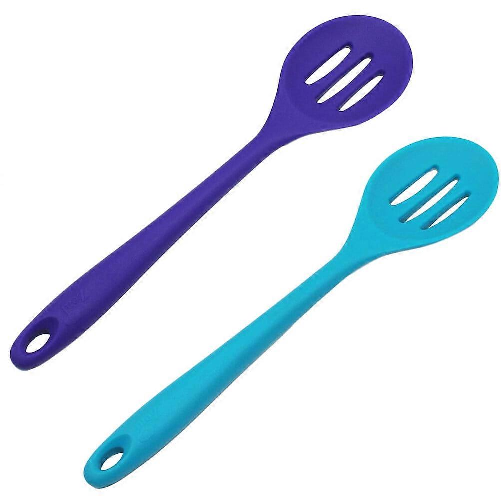 2 Pcs Food Grade Silicone Colander High Temperature Resistance Spoon Silicone Slotted Spoon (Random Color)