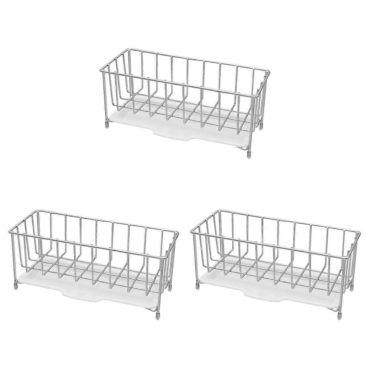 3 Pieces Storage Shelf Storage Shelves Dish Brush Holder Kitchen Sink Organizer Metal Tray Sink Sponge Organizer