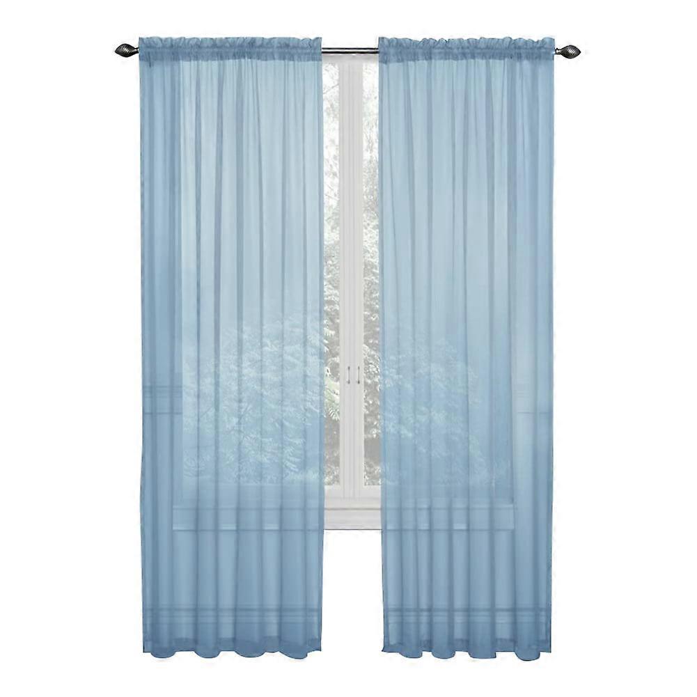 Dark Blue Sheer Curtains, Airy Soft-Touching Rod Pocket Voile Drapes for Living Room/Bedroom, Each 40" W x 80"L