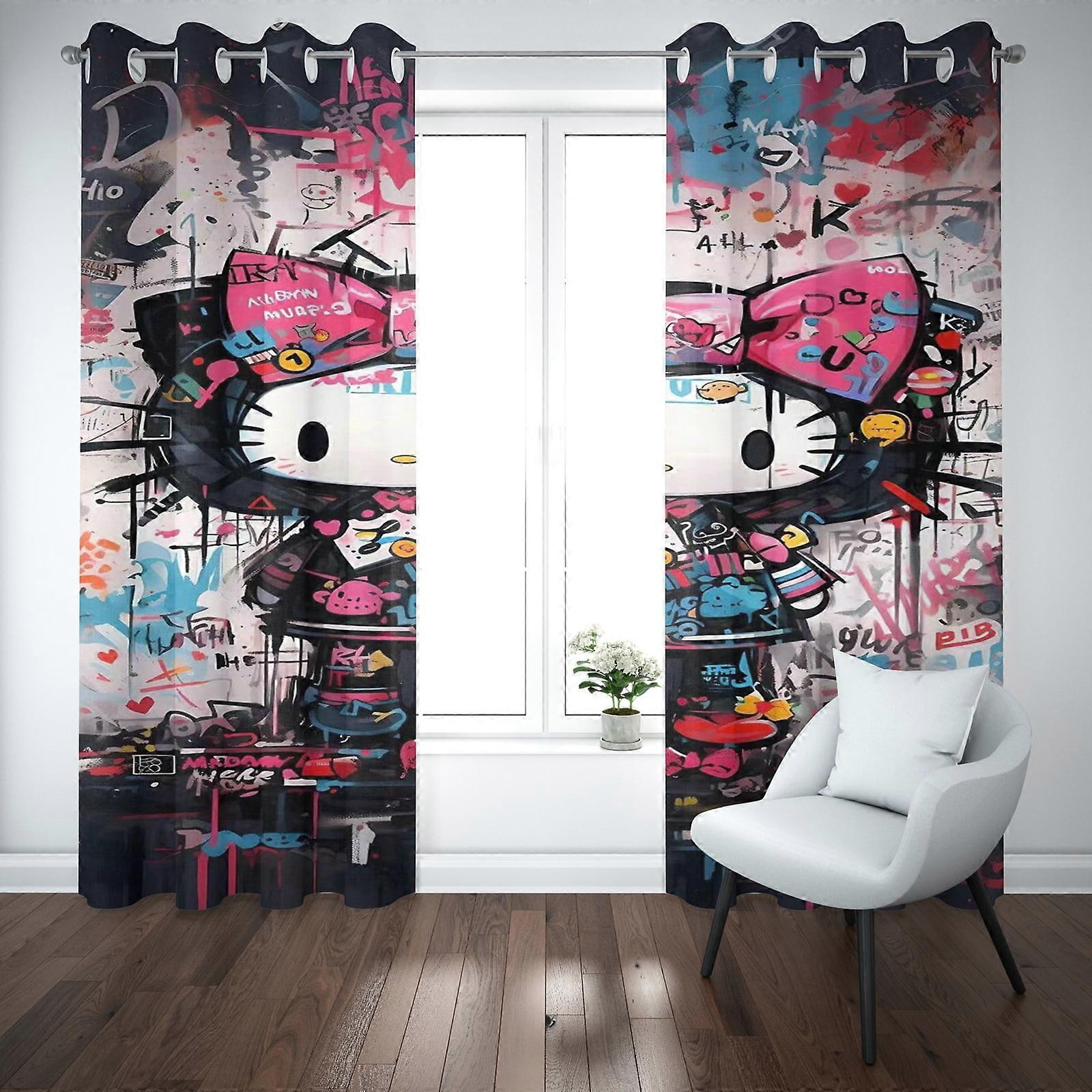 Hello Kitty Home Cartoon Sanrio Curtain Cute Printing Light Filtering Curtains Living Room Bedroom Heat and Sun Protection