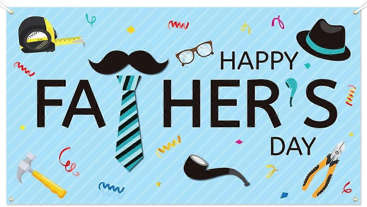 Package Includes: One durable Happy Fathers Day Banner, large size 71 x 47 inch. One white ribbon about 20 feet, enough to use. Durable Material: Fathers Day Backdrop Banner is made of durable polyester, which is waterproof, durable and can be reused. Fathers Day Decorations: Fathers day banner is designed with blue background, cute beard, tie, hat, pipe, glasses, tools. Fathers Day backdrop is perfect for father's day decorations. Easy to Use: Hang it up through the 4 grommet holes in the corner or use tapes. Celebrate this important day and thank all fathers. Widely Used: You can hang on the wall, photo booth or fence.Father's day backdrop can be widely used in different parties indoor and outdoor, great choice for fathers day decorations.