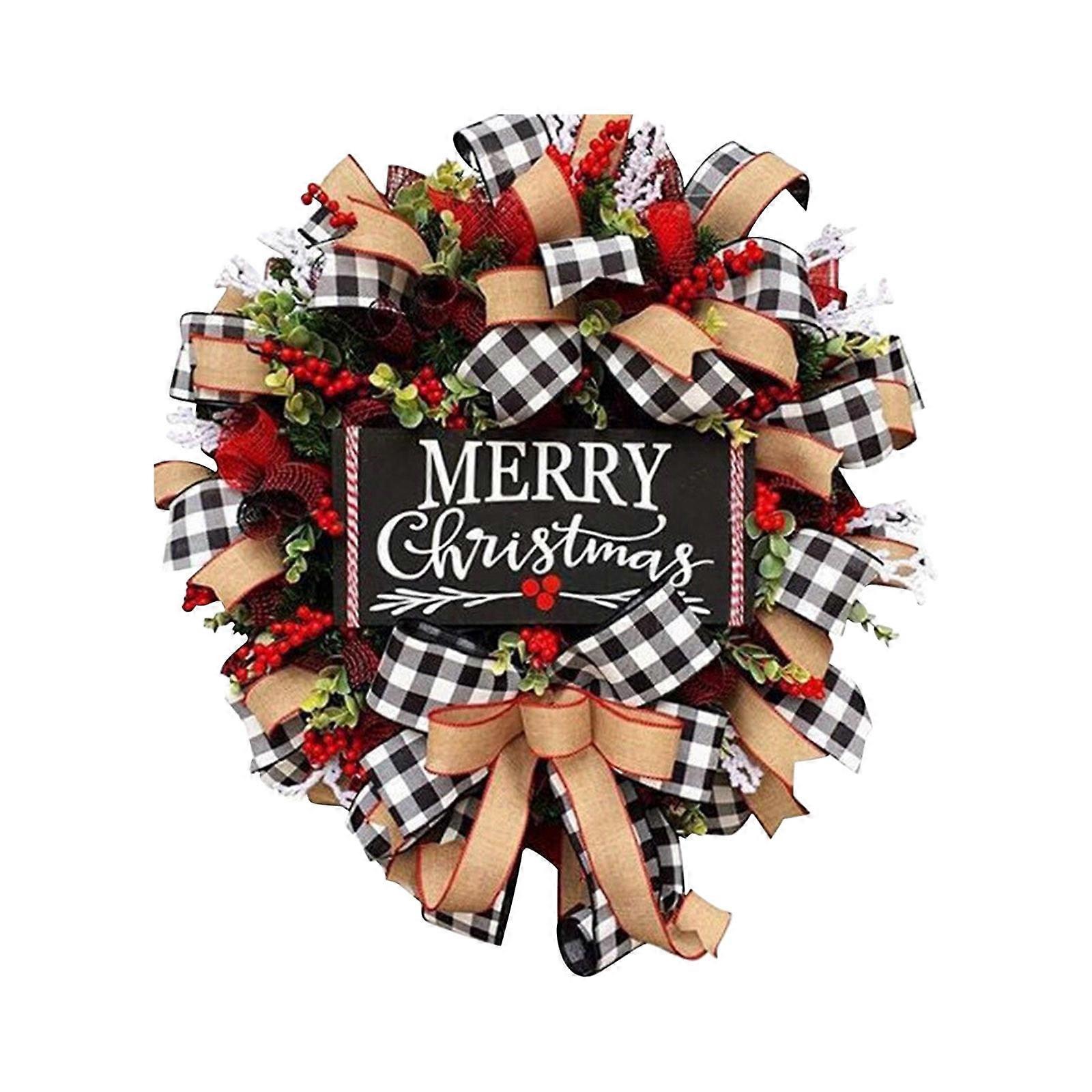 Christmas Clearance! Decorate with WJSXC Plaid Garland, Bow & Red Berries. Compatible with outdoor festive parties.