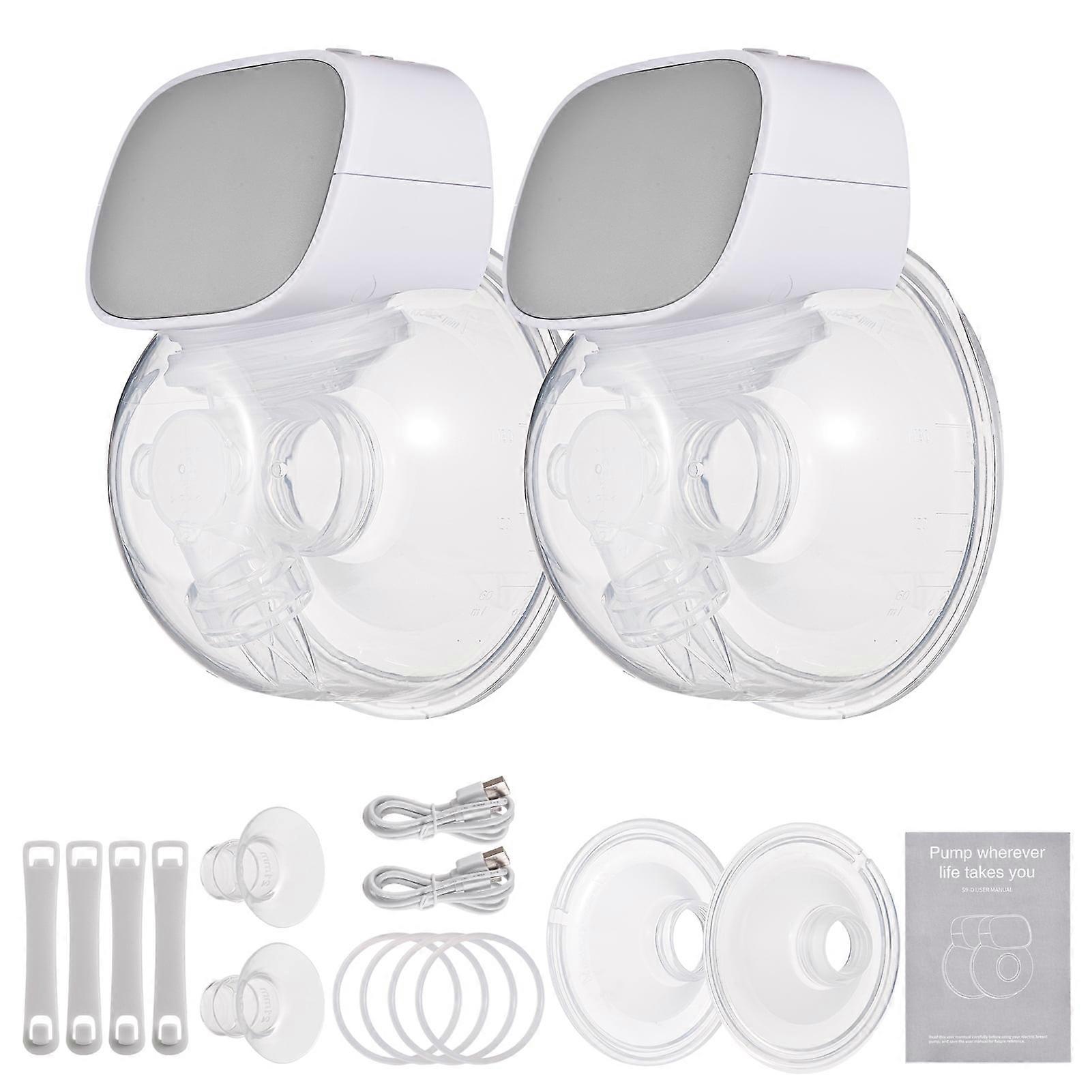 2PCS Wearable Electric Pump Silent Invisible Hands Free 27mm Pump 2 Modes 5 Suction Levels with 2pcs Extra 24mm Silicone for Home Travel
