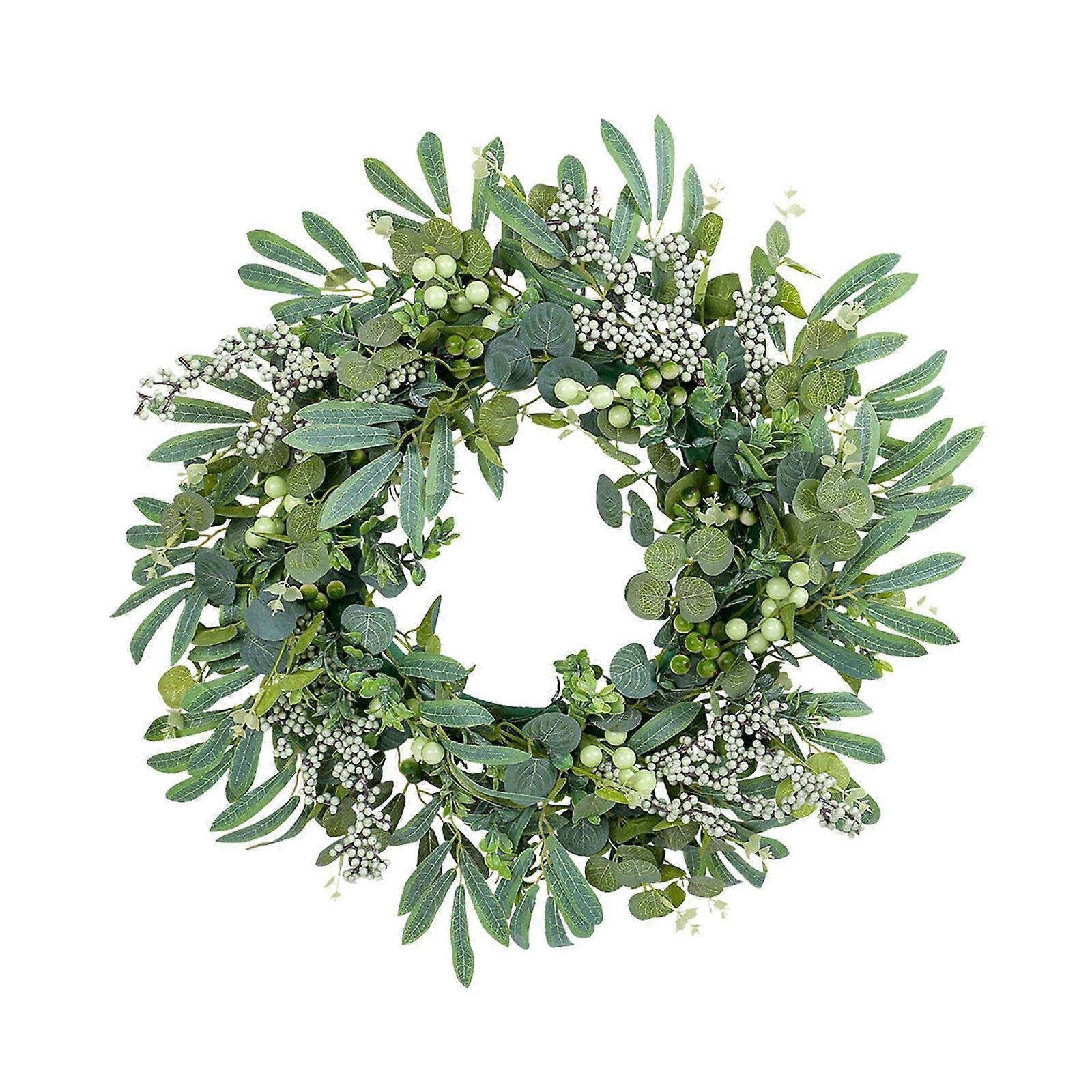 Summer Berry Wreath 20” Artificial Rattan Door Hanging, Compatible with Fall & Back to School Decor, Leaf & Boxwood Design