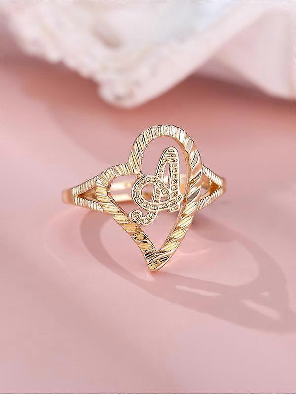 Vintage Hollow out Heart Design Cuff Ring, Letter Design Cuff Ring, Fashion Jewelry for Women & Girls