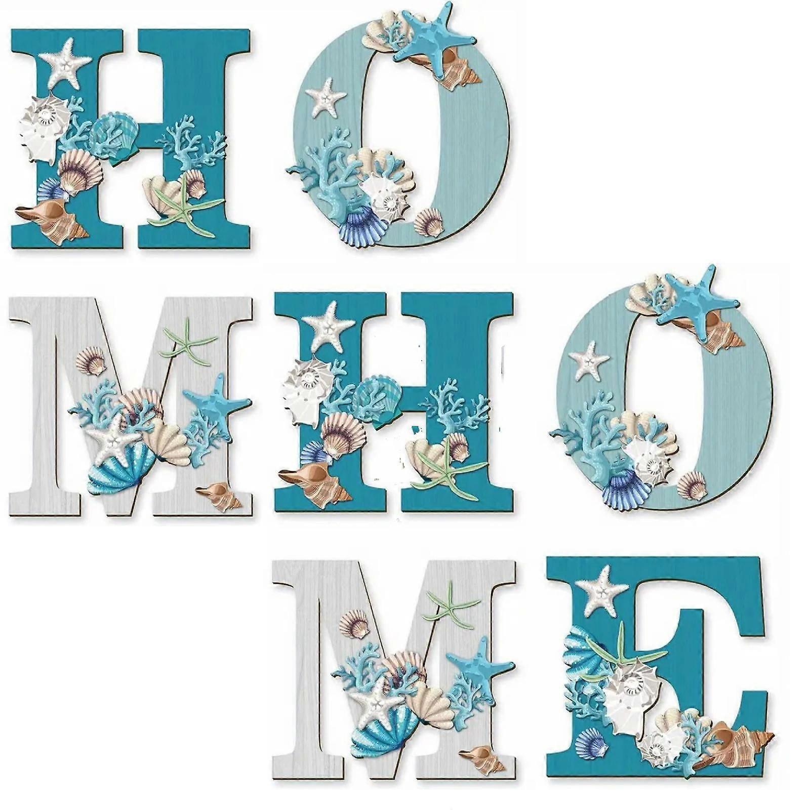 Xubond home decor 4 Pcs Wood Home Sign Coastal Beach Wall Decor Signs Blue And Theme hanging decor Blue