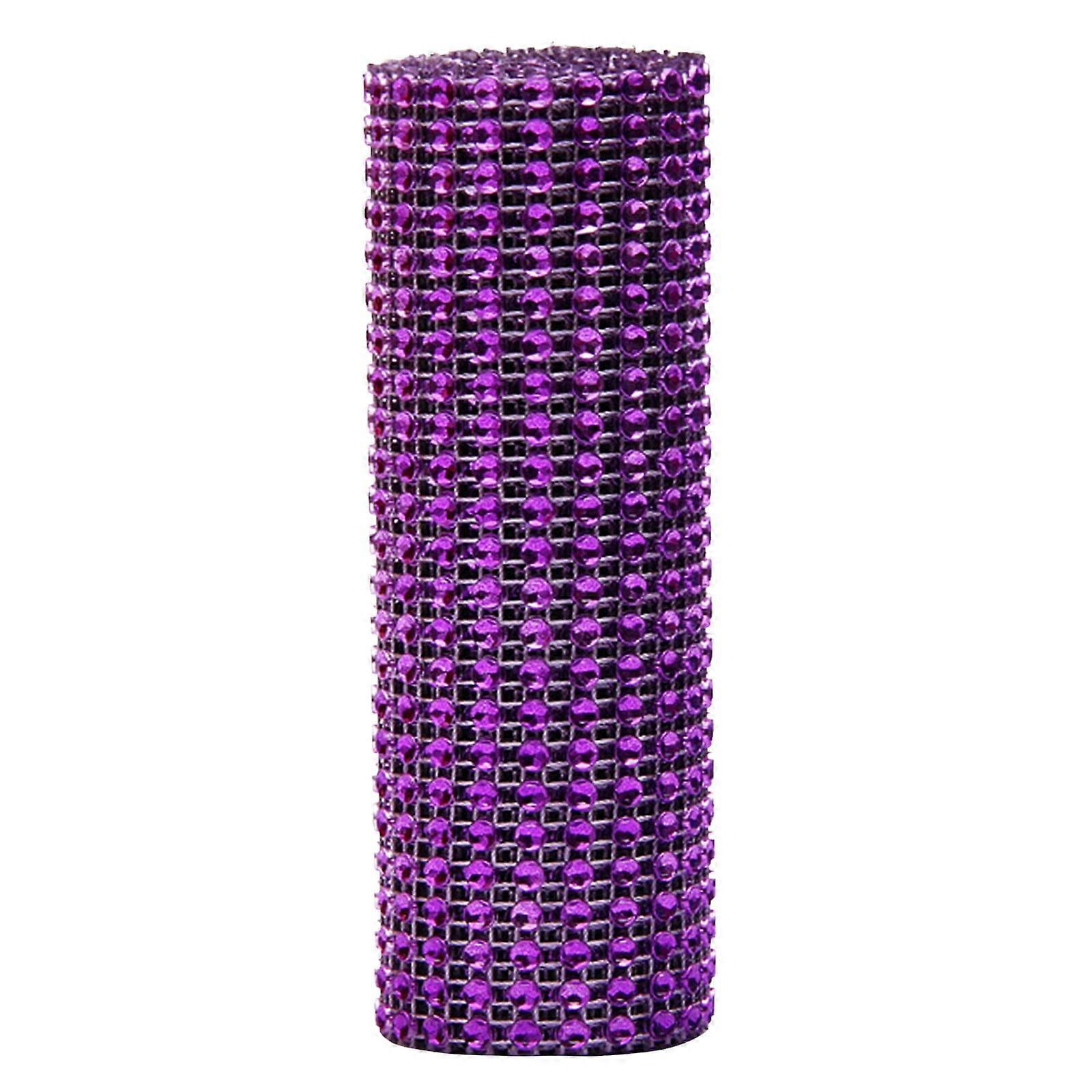 XIUH Home Decoration Crystal Rhinestone Ribbons Plastic 24 Rows Shiny Diamond Rhinestone Mesh Wrap Roll (Purple)